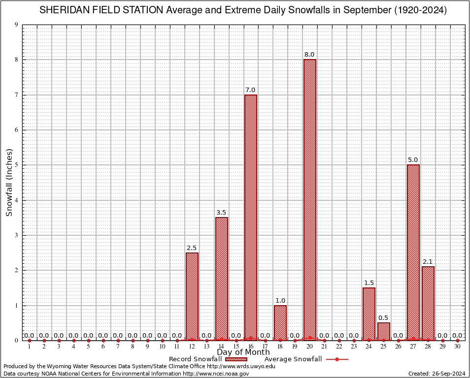 September Average and Extreme Daily Snowfall AMounts (1920-2024)