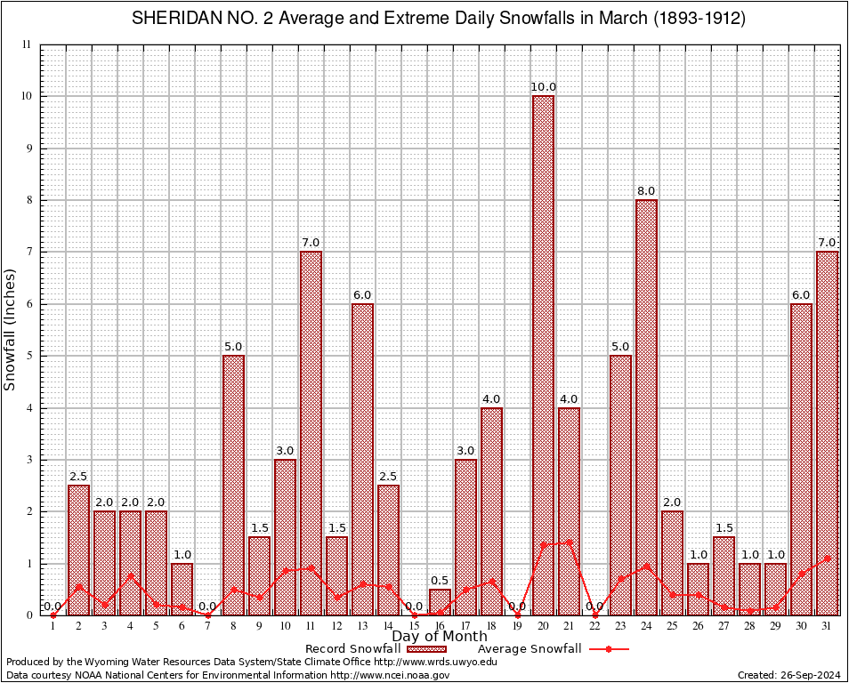 March Average and Extreme Daily Snowfall AMounts (1893-1912)