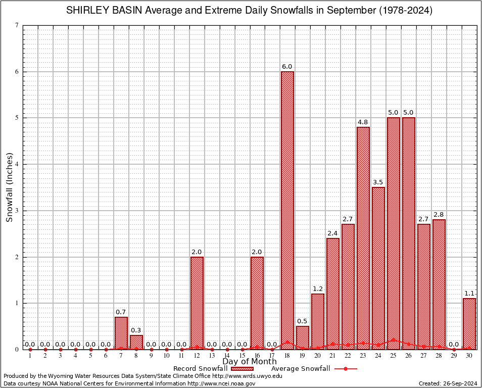 September Average and Extreme Daily Snowfall AMounts (1978-2024)