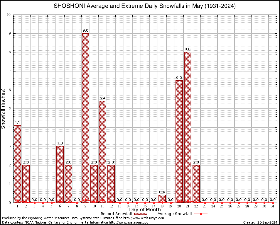 May Average and Extreme Daily Snowfall AMounts (1931-2024)