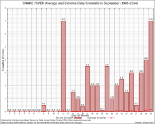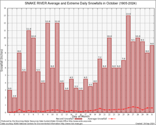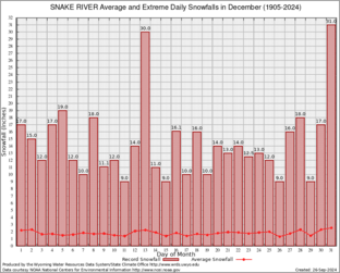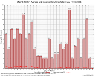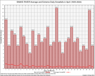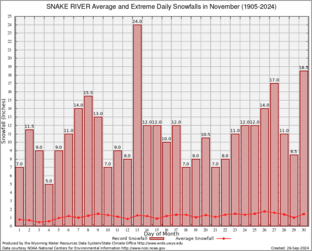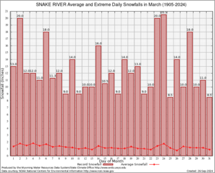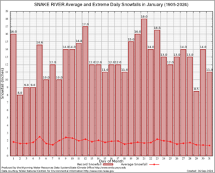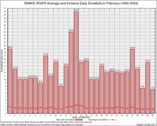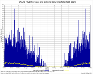 Record Extreme and Average Daily Snowfall (1905-2024)
