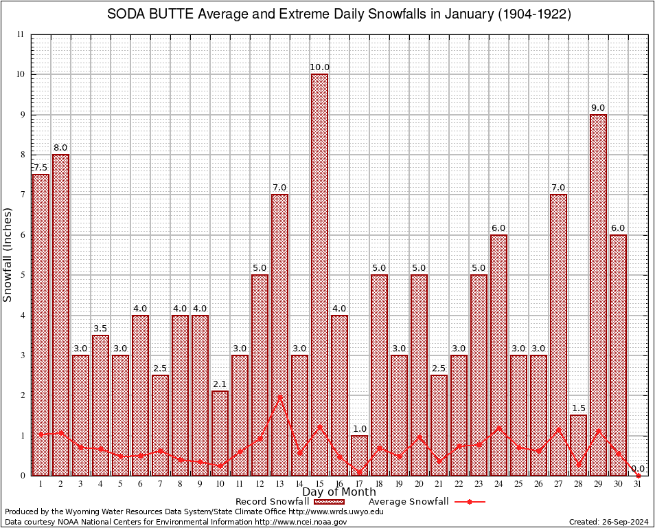 January Average and Extreme Daily Snowfall AMounts (1904-1922)