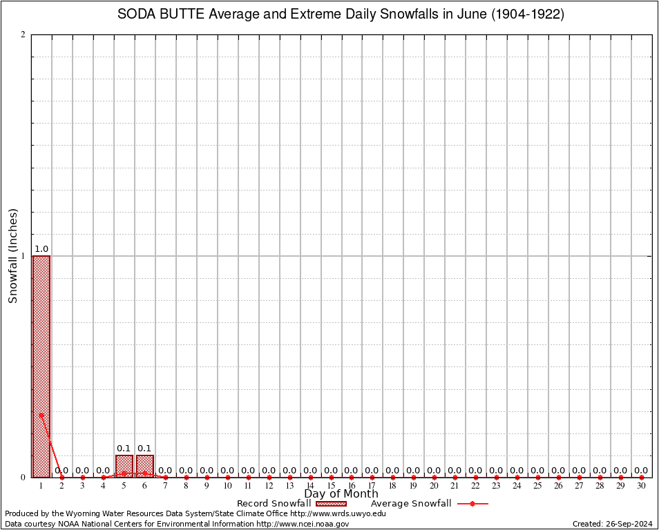 June Average and Extreme Daily Snowfall AMounts (1904-1922)
