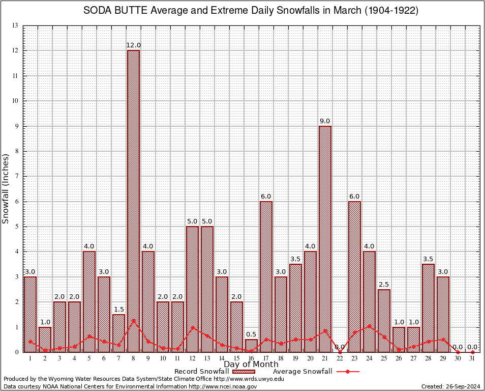 March Average and Extreme Daily Snowfall AMounts (1904-1922)