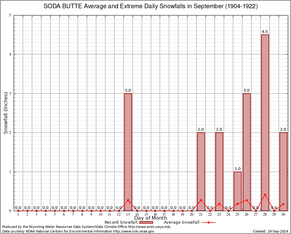 SODA BUTTE (488340) September Average and Extreme Daily Snowfall AMounts (1904-1922) To index page for SODA BUTTE
