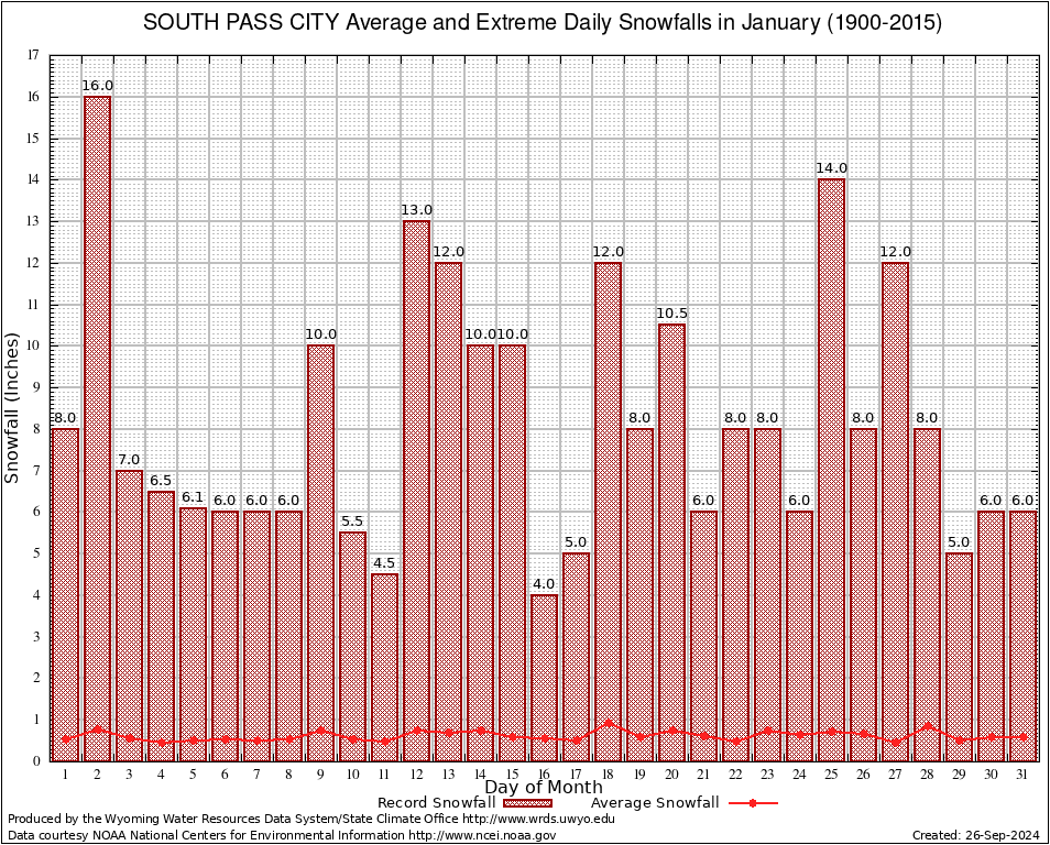 January Average and Extreme Daily Snowfall AMounts (1900-2015)
