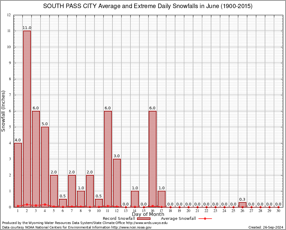 June Average and Extreme Daily Snowfall AMounts (1900-2015)