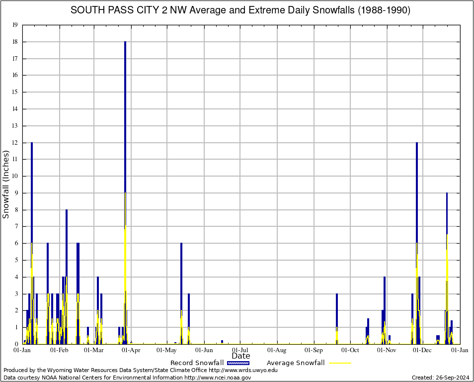 Annual Average and Extreme Daily Snowfall AMounts (1988-1990)
