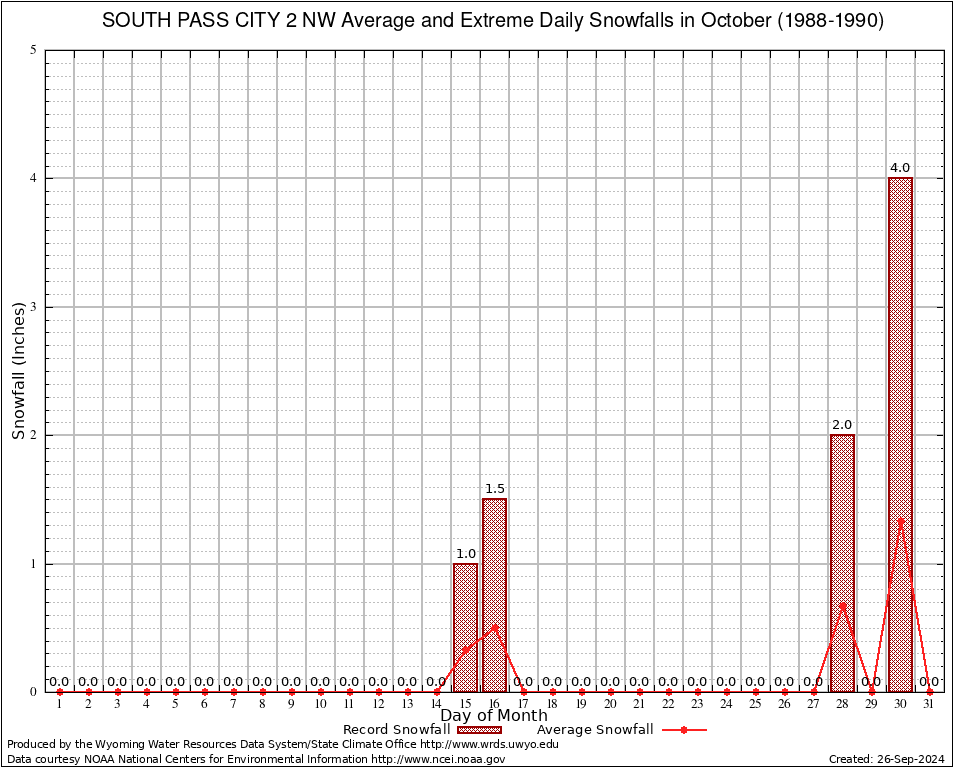 October Average and Extreme Daily Snowfall AMounts (1988-1990)