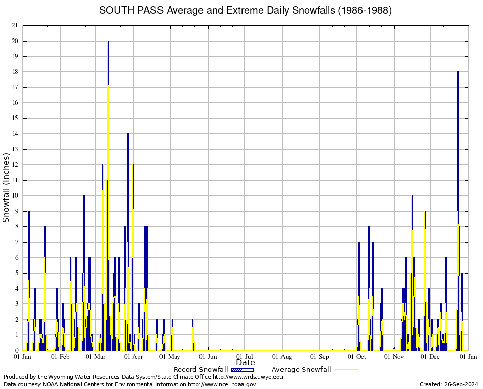 Annual Average and Extreme Daily Snowfall AMounts (1986-1988)