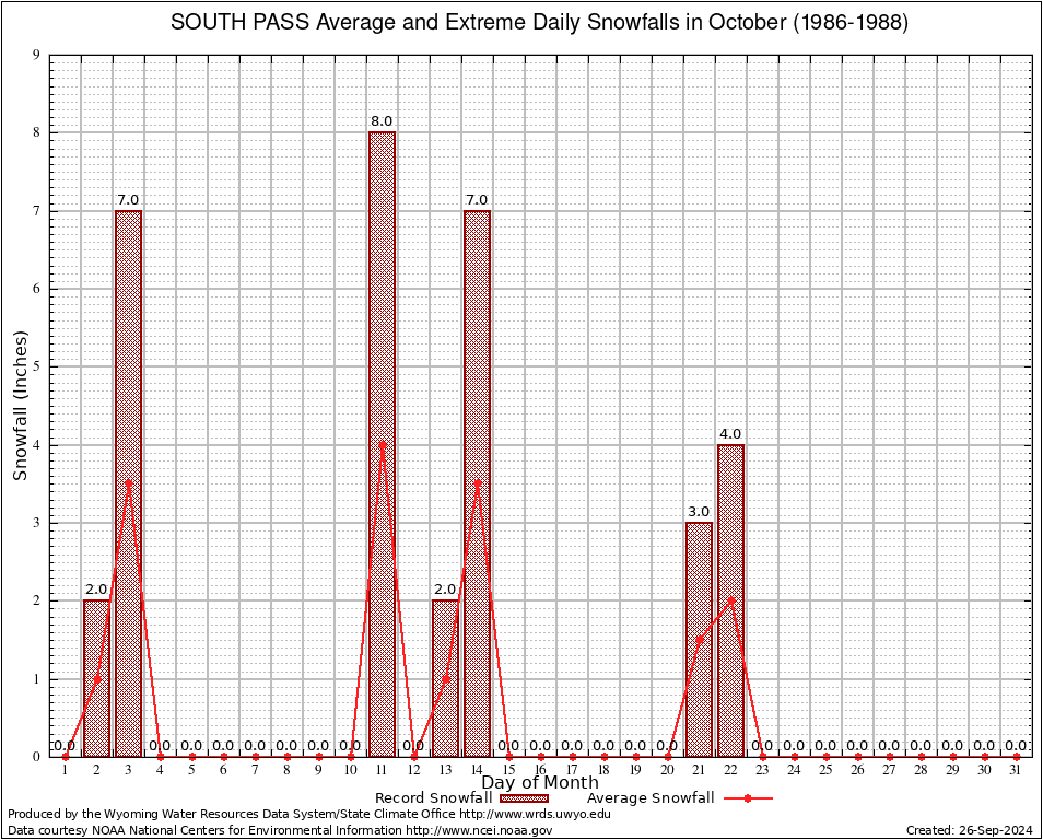 October Average and Extreme Daily Snowfall AMounts (1986-1988)