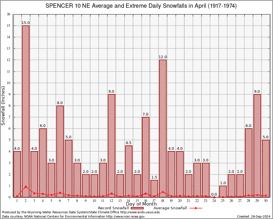 April Average and Extreme Daily Snowfall AMounts (1917-1974)