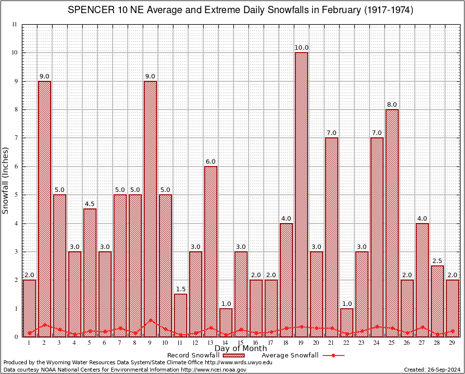 February Average and Extreme Daily Snowfall AMounts (1917-1974)