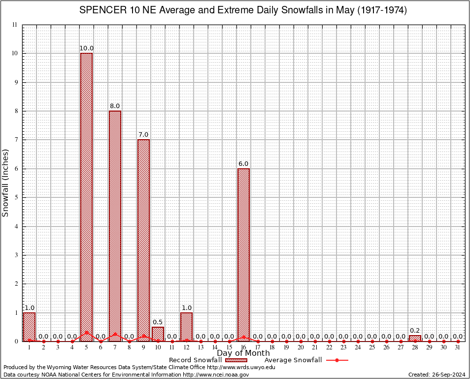 May Average and Extreme Daily Snowfall AMounts (1917-1974)