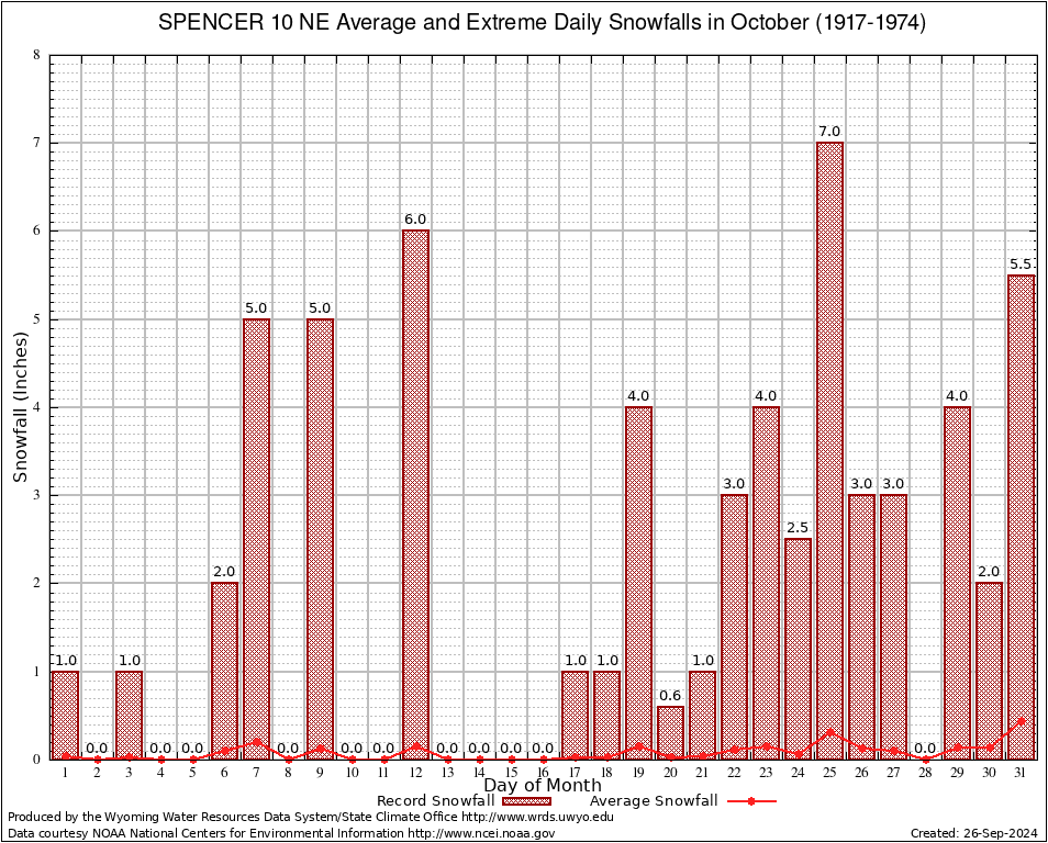 October Average and Extreme Daily Snowfall AMounts (1917-1974)