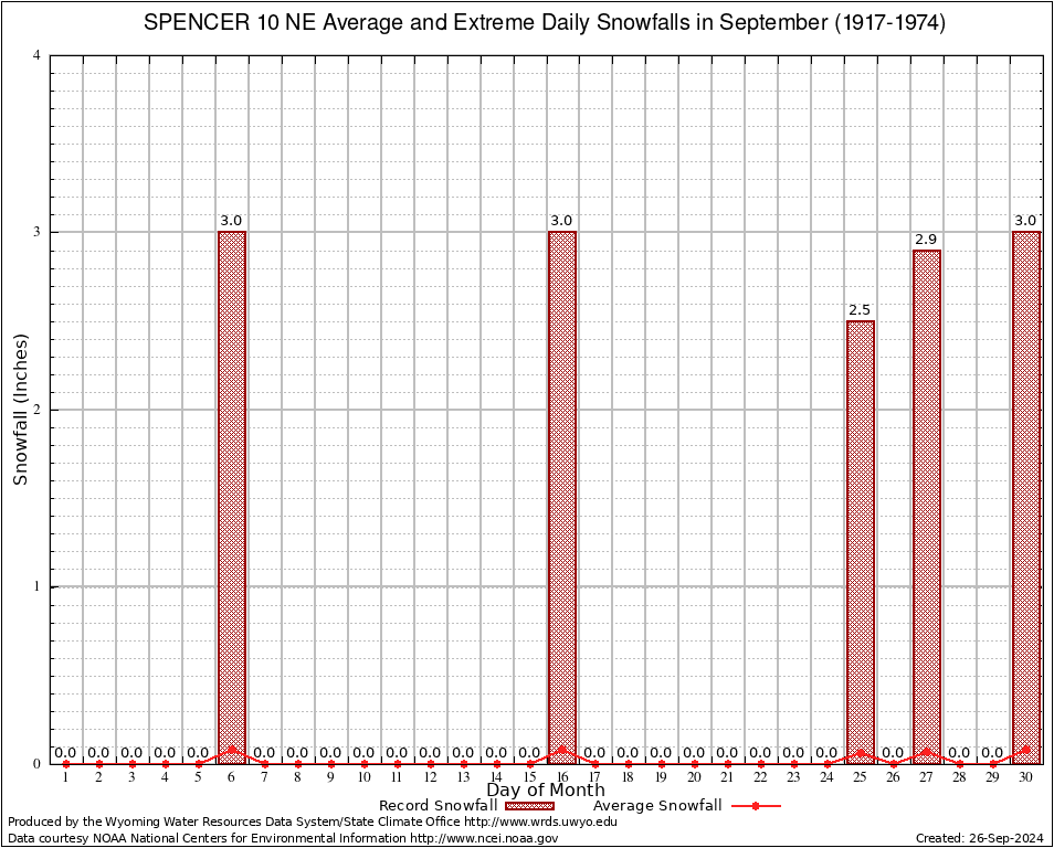 September Average and Extreme Daily Snowfall AMounts (1917-1974)
