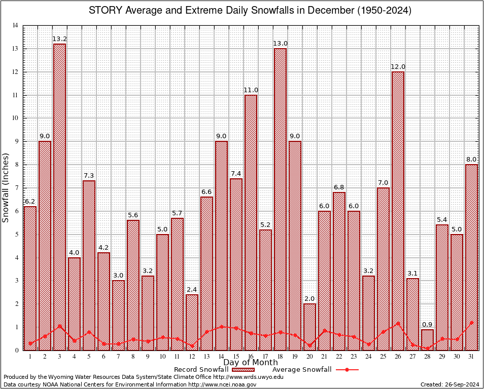 STORY (488626) December Average and Extreme Daily Snowfall AMounts (1950-2024) To index page for STORY