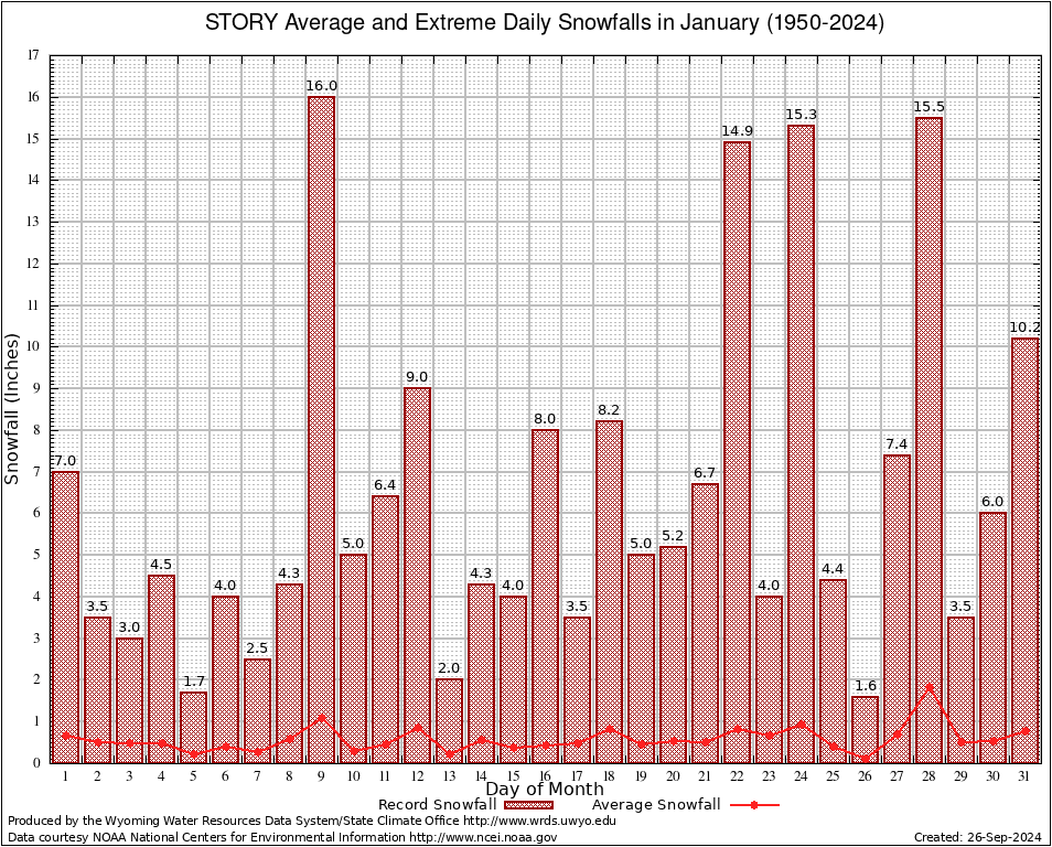 STORY (488626) January Average and Extreme Daily Snowfall AMounts (1950-2024) To index page for STORY