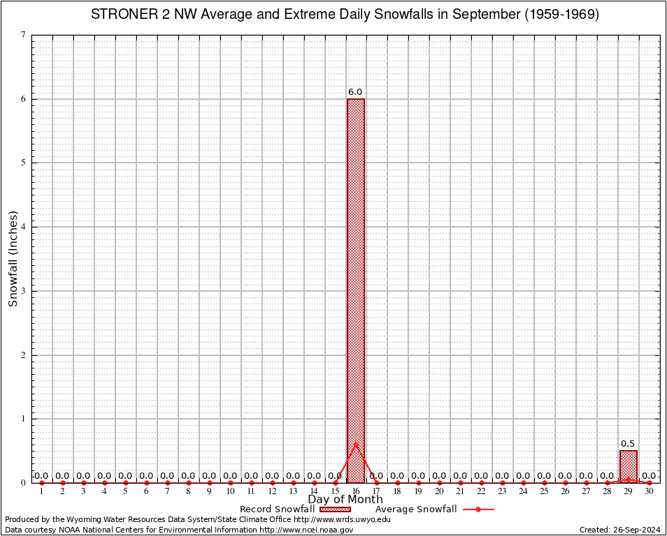 September Average and Extreme Daily Snowfall AMounts (1959-1969)