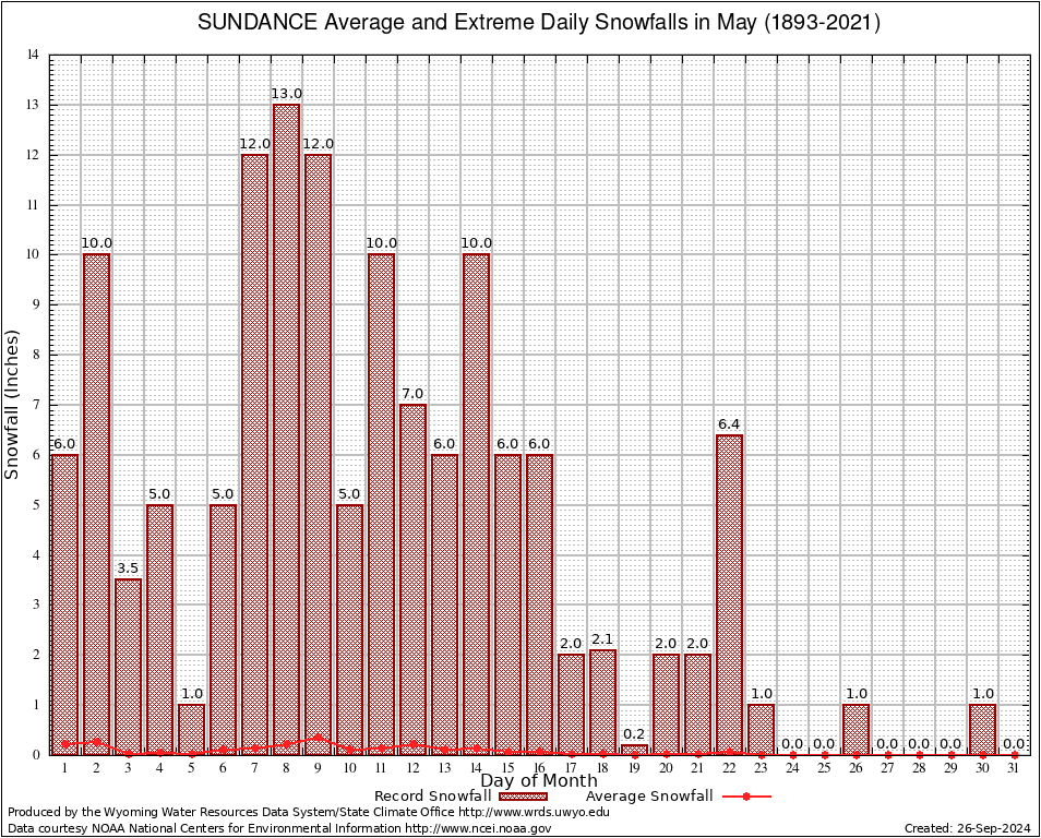 May Average and Extreme Daily Snowfall AMounts (1893-2021)