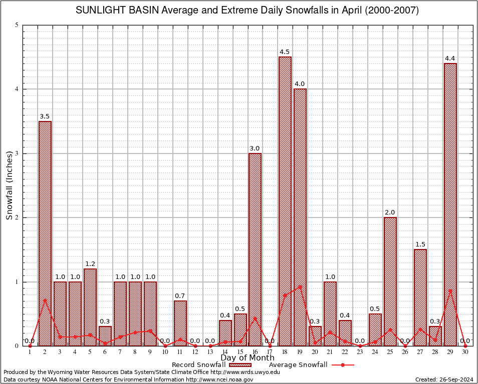 April Average and Extreme Daily Snowfall AMounts (2000-2007)