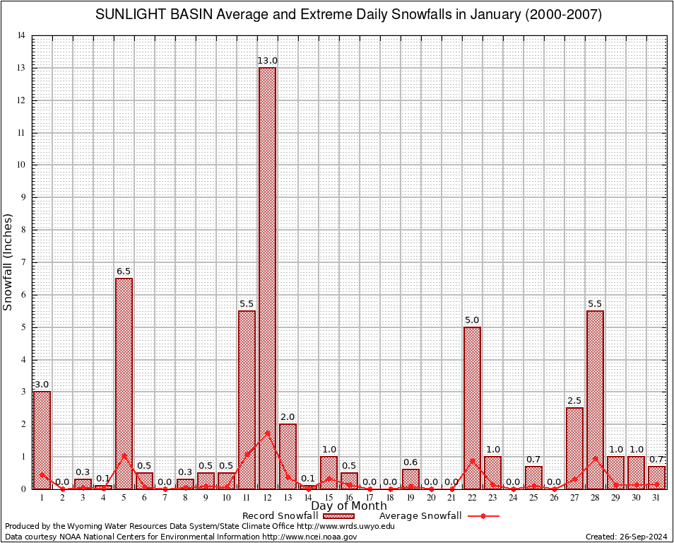 January Average and Extreme Daily Snowfall AMounts (2000-2007)