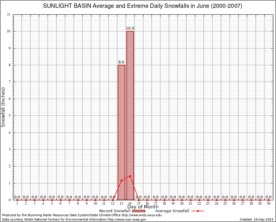 June Average and Extreme Daily Snowfall AMounts (2000-2007)