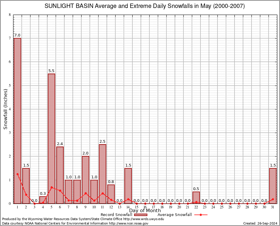 May Average and Extreme Daily Snowfall AMounts (2000-2007)