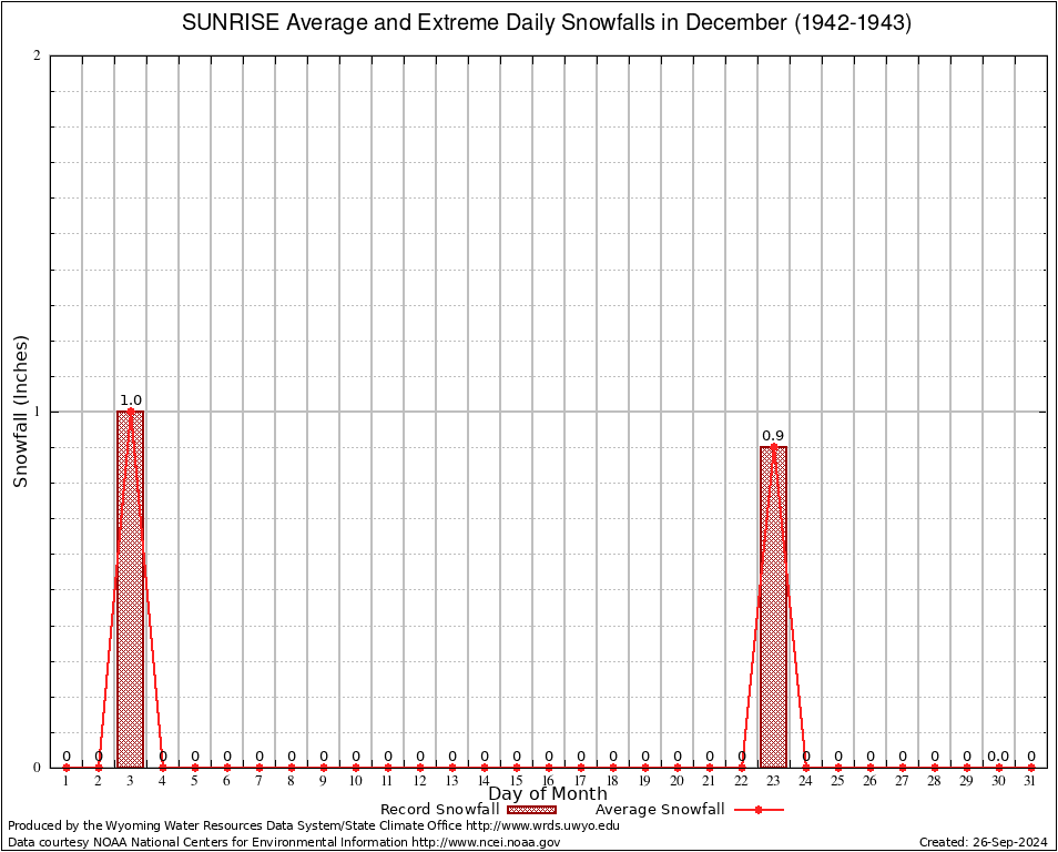 SUNRISE (488730) December Average and Extreme Daily Snowfall AMounts (1942-1943) To index page for SUNRISE