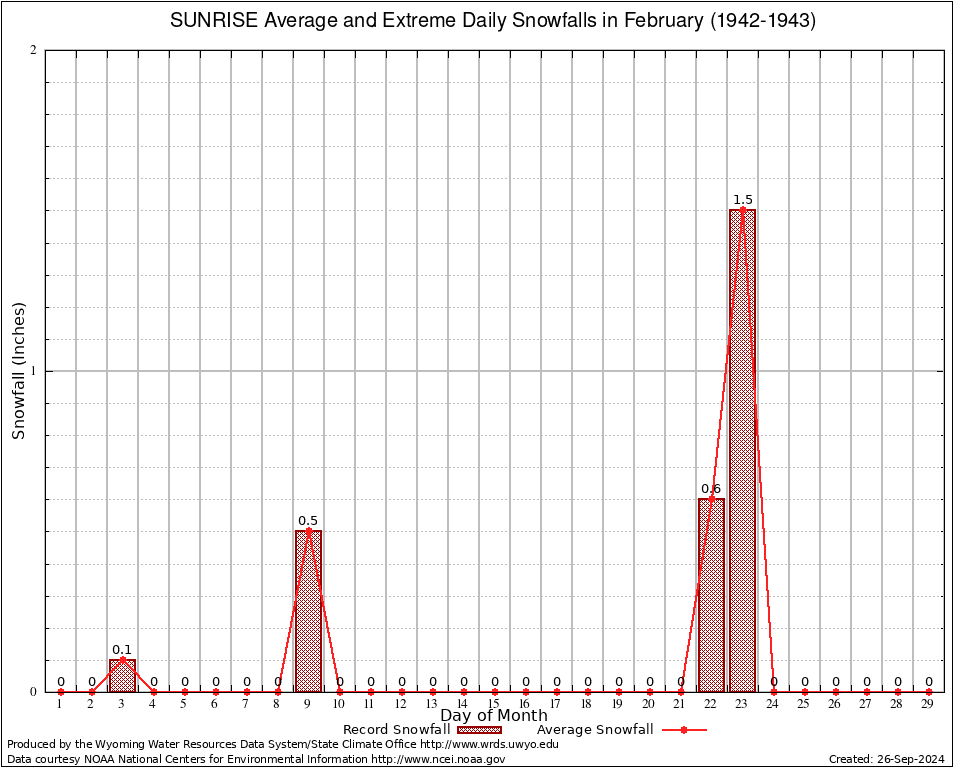SUNRISE (488730) February Average and Extreme Daily Snowfall AMounts (1942-1943) To index page for SUNRISE
