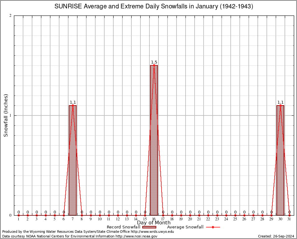 SUNRISE (488730) January Average and Extreme Daily Snowfall AMounts (1942-1943) To index page for SUNRISE