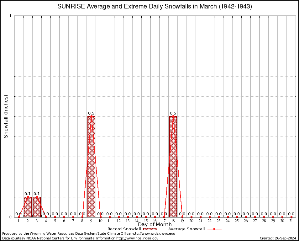 SUNRISE (488730) March Average and Extreme Daily Snowfall AMounts (1942-1943) To index page for SUNRISE