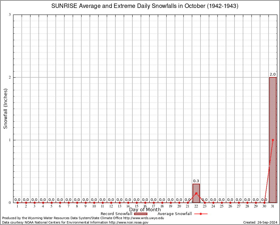 SUNRISE (488730) October Average and Extreme Daily Snowfall AMounts (1942-1943) To index page for SUNRISE