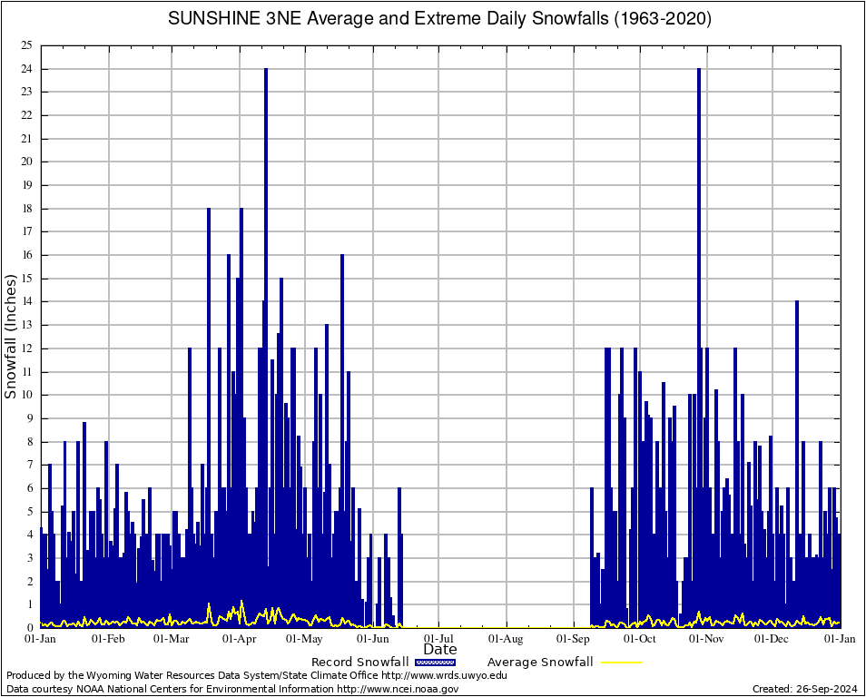 Annual Average and Extreme Daily Snowfall AMounts (1963-2020)