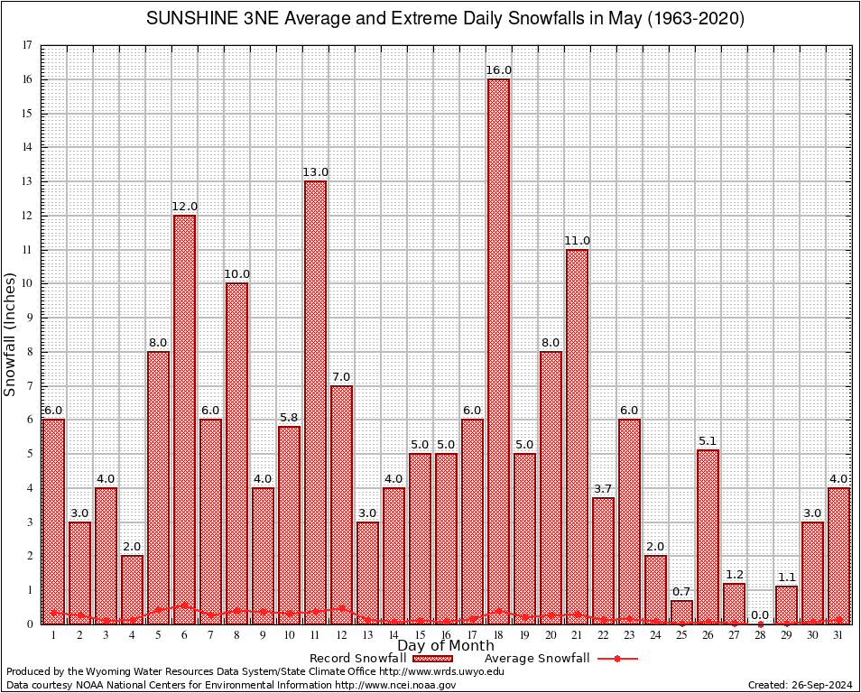May Average and Extreme Daily Snowfall AMounts (1963-2020)
