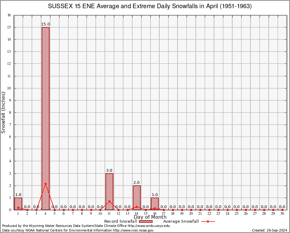 April Average and Extreme Daily Snowfall AMounts (1951-1963)