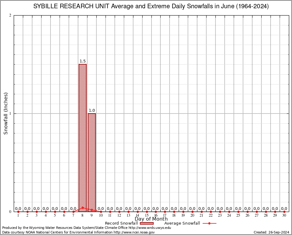 June Average and Extreme Daily Snowfall AMounts (1964-2024)