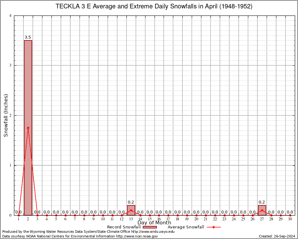 April Average and Extreme Daily Snowfall AMounts (1948-1952)