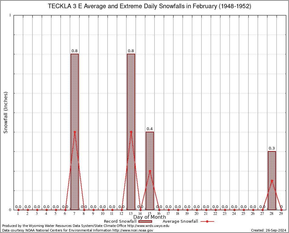 TECKLA 3 E (488830) February Average and Extreme Daily Snowfall AMounts (1948-1952) To index page for TECKLA 3 E