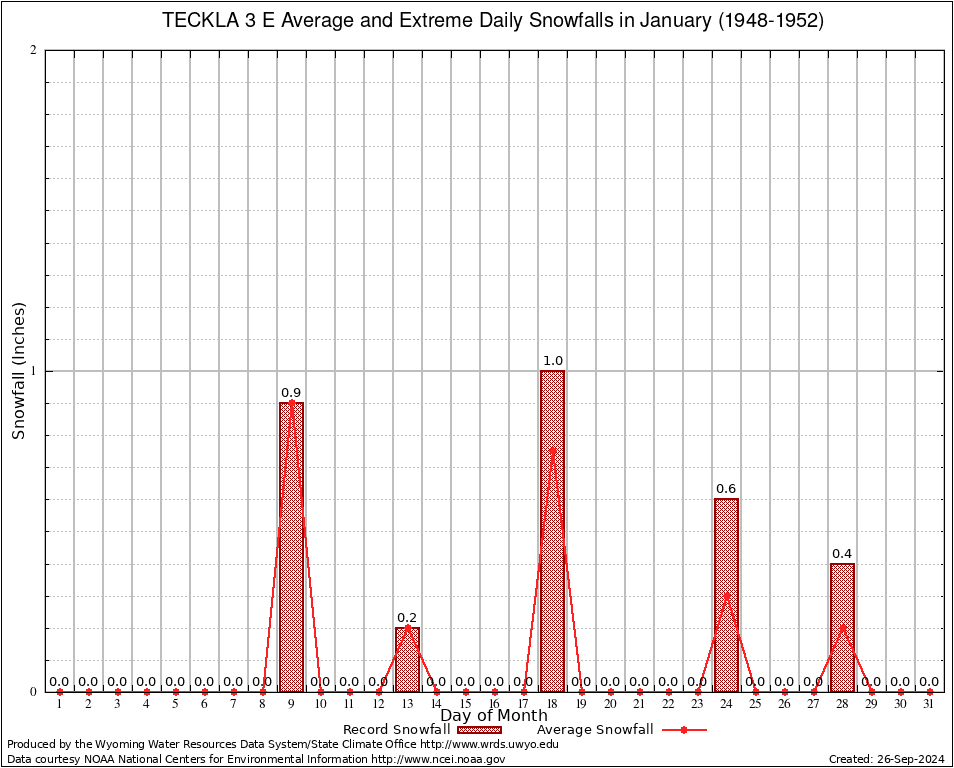 January Average and Extreme Daily Snowfall AMounts (1948-1952)