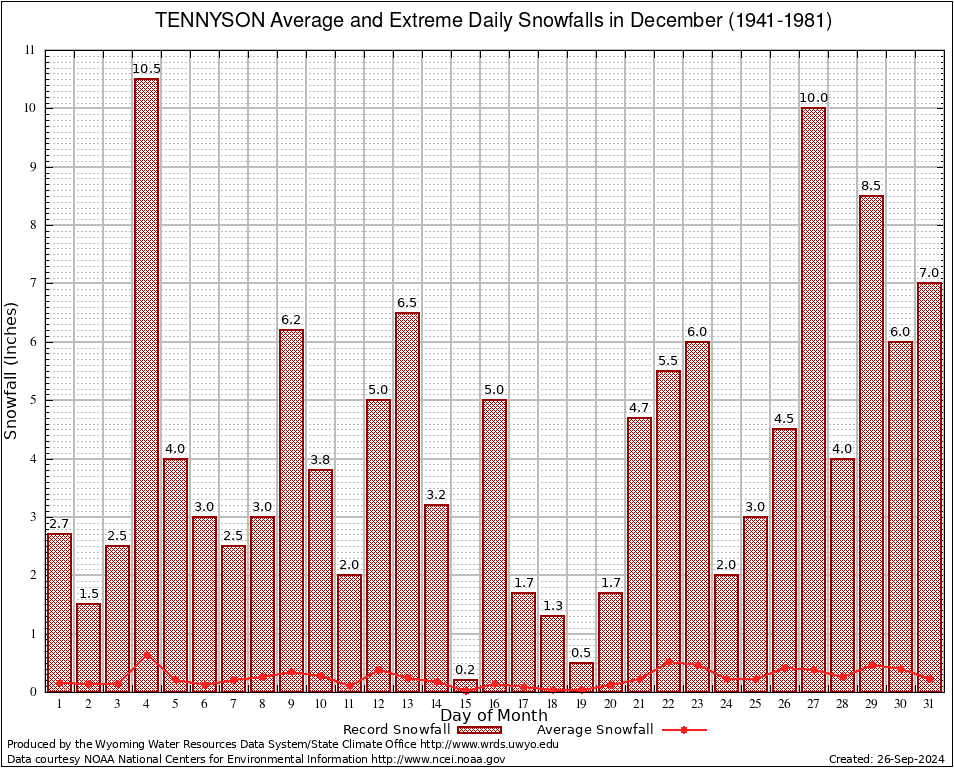 TENNYSON (488845) December Average and Extreme Daily Snowfall AMounts (1941-1981) To index page for TENNYSON