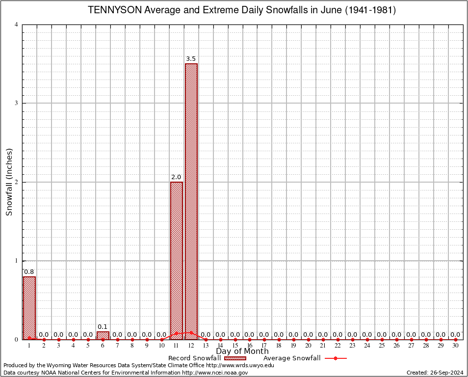 TENNYSON (488845) June Average and Extreme Daily Snowfall AMounts (1941-1981) To index page for TENNYSON
