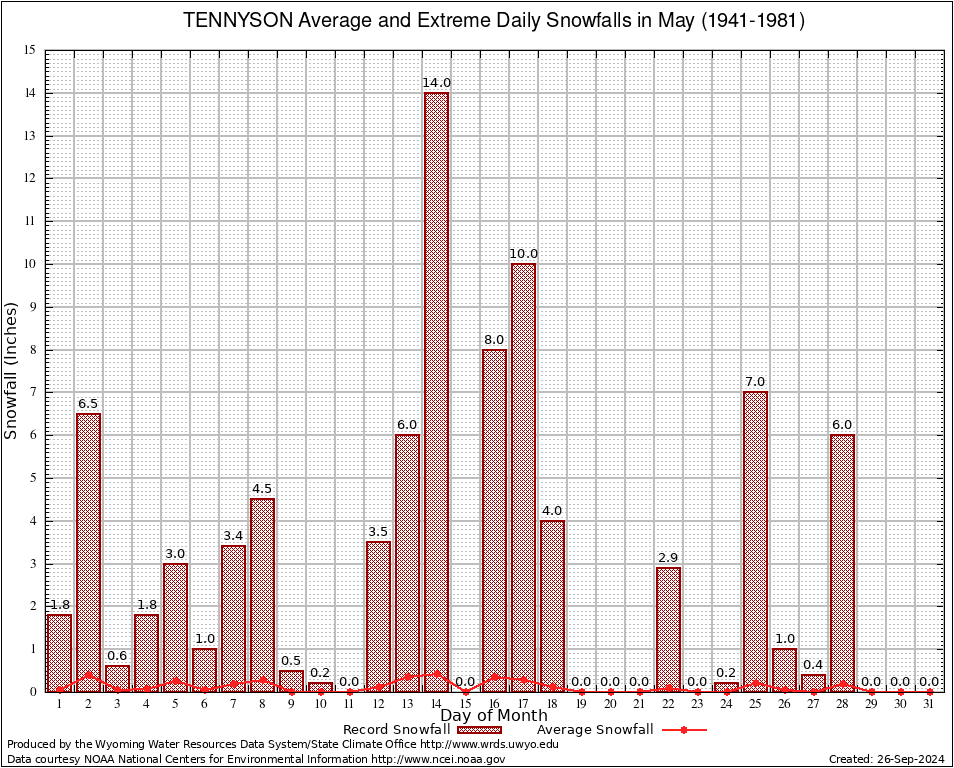 May Average and Extreme Daily Snowfall AMounts (1941-1981)