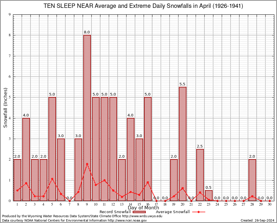 April Average and Extreme Daily Snowfall AMounts (1926-1941)