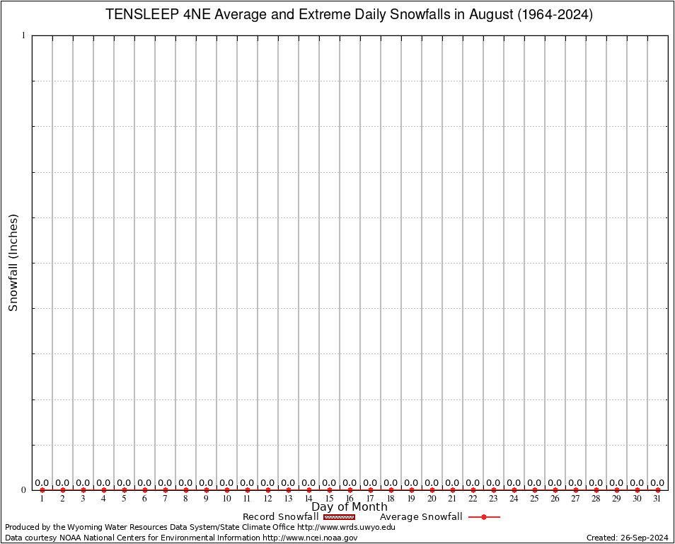 August Average and Extreme Daily Snowfall AMounts (1964-2024)