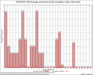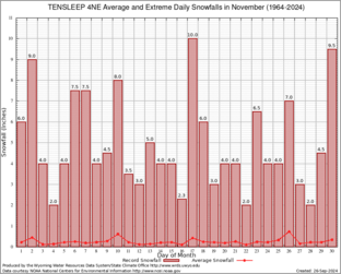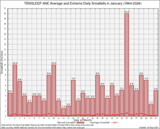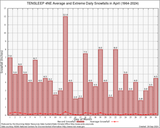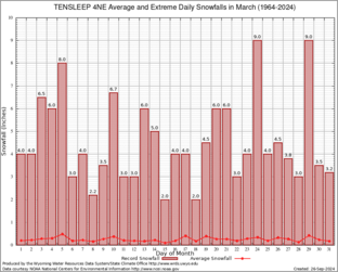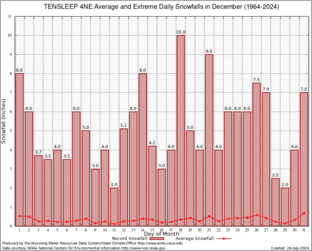 Record Extreme and Average Daily Snowfall (1964-2024)