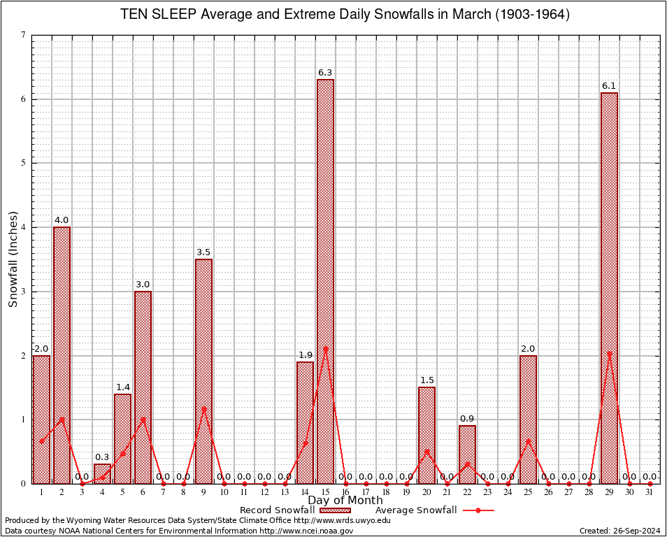 March Average and Extreme Daily Snowfall AMounts (1903-1964)