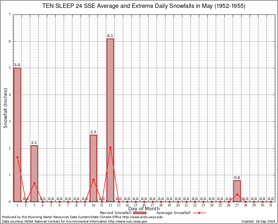 May Average and Extreme Daily Snowfall AMounts (1952-1955)