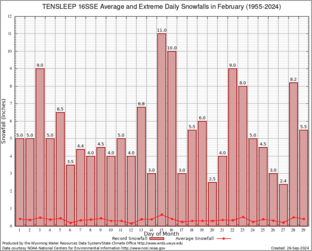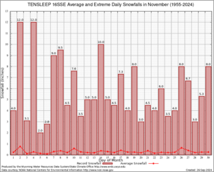 Record Extreme and Average Daily Snowfall (1955-2024)