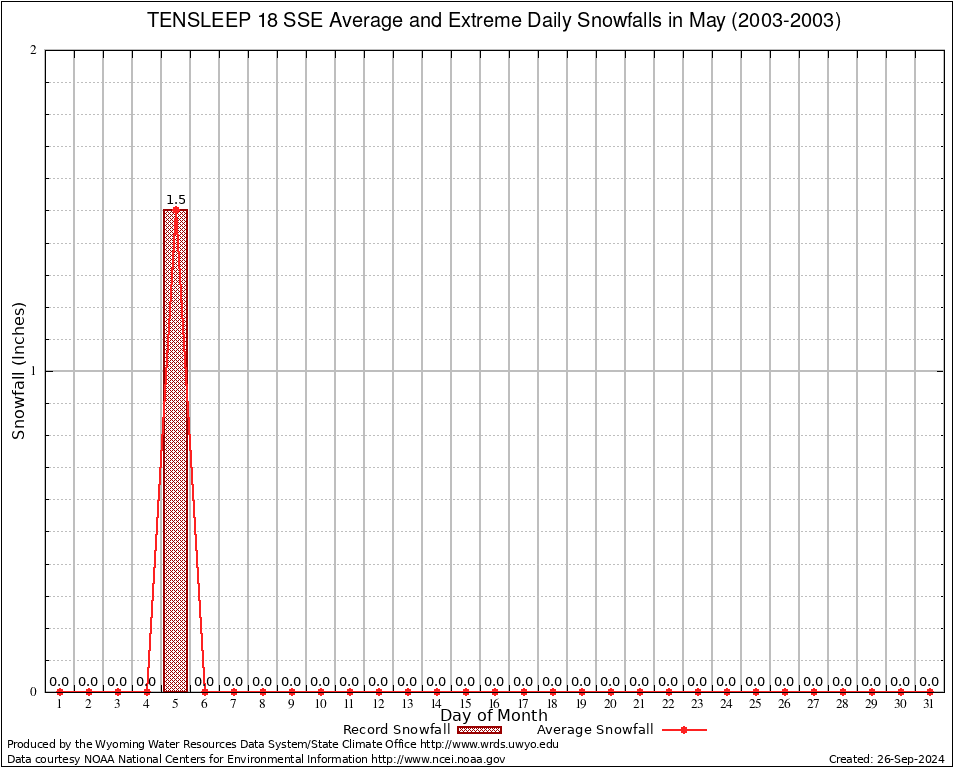 May Average and Extreme Daily Snowfall AMounts (2003-2003)